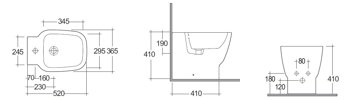 Bidet a pavimento filo muro, monoforo bianco. Fissaggi laterali. Fissaggi inclusi.