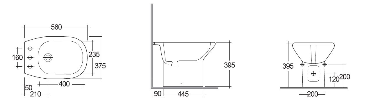 Bidet monoforo. Fissaggi laterali. Fissaggi inclusi.