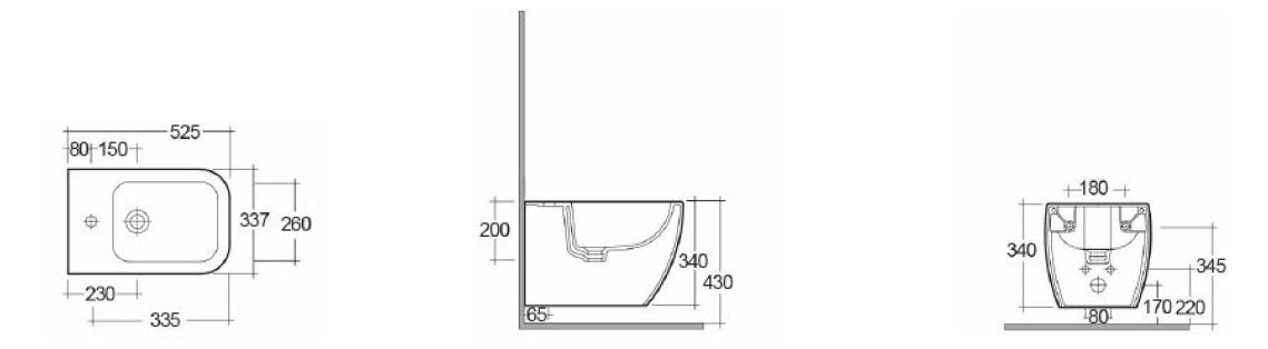 Bidet sospeso monoforo. Fissaggi nascosti. Fissaggi inclusi.