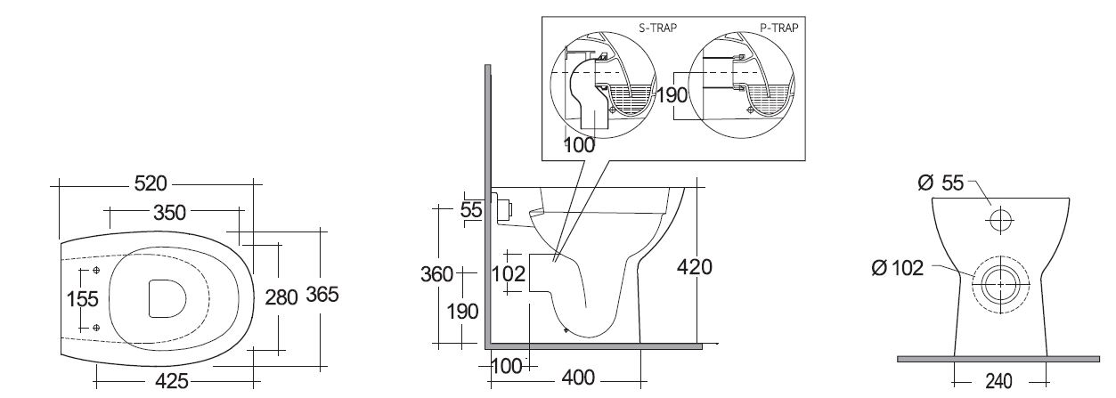 Vaso corto filo muro Rimless scarico universale, fissaggi laterali. Fissaggi inclusi. Curva tecnica ad “S” per scarico a pavimento inclusa.