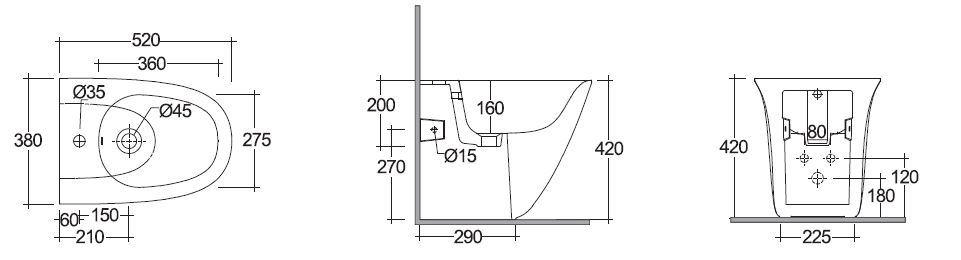 Bidet a pavimento filo muro, monoforo bianco. Fissaggi nascosti. Fissaggi inclusi.