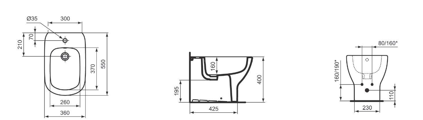 Bidet filo parete monoforo, bianco. Il bidet è corredato di fissaggi a pavimento.