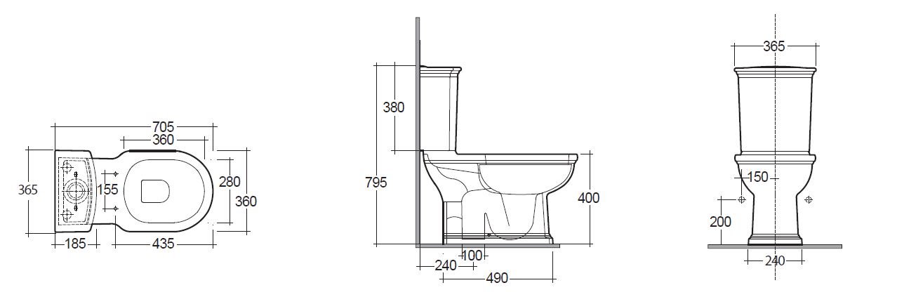 Vaso monoblocco scarico pavimento, con apertura posteriore 70cm, fissaggi laterali, fissaggi inclusi.